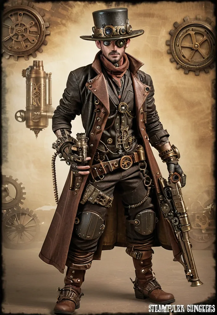 Photo realistic full lenght white steampunk open lace shirt , brown corset with clockworks parts , green openside wrap skirt , brown leggings , green boots , long brown wavy hair , white pale freckled 30yo european woman with glasses , she standing up a hand on her hip and steampunk book in the other , she is in a steampunk laboratory full of book and machinery she have a little smile ,