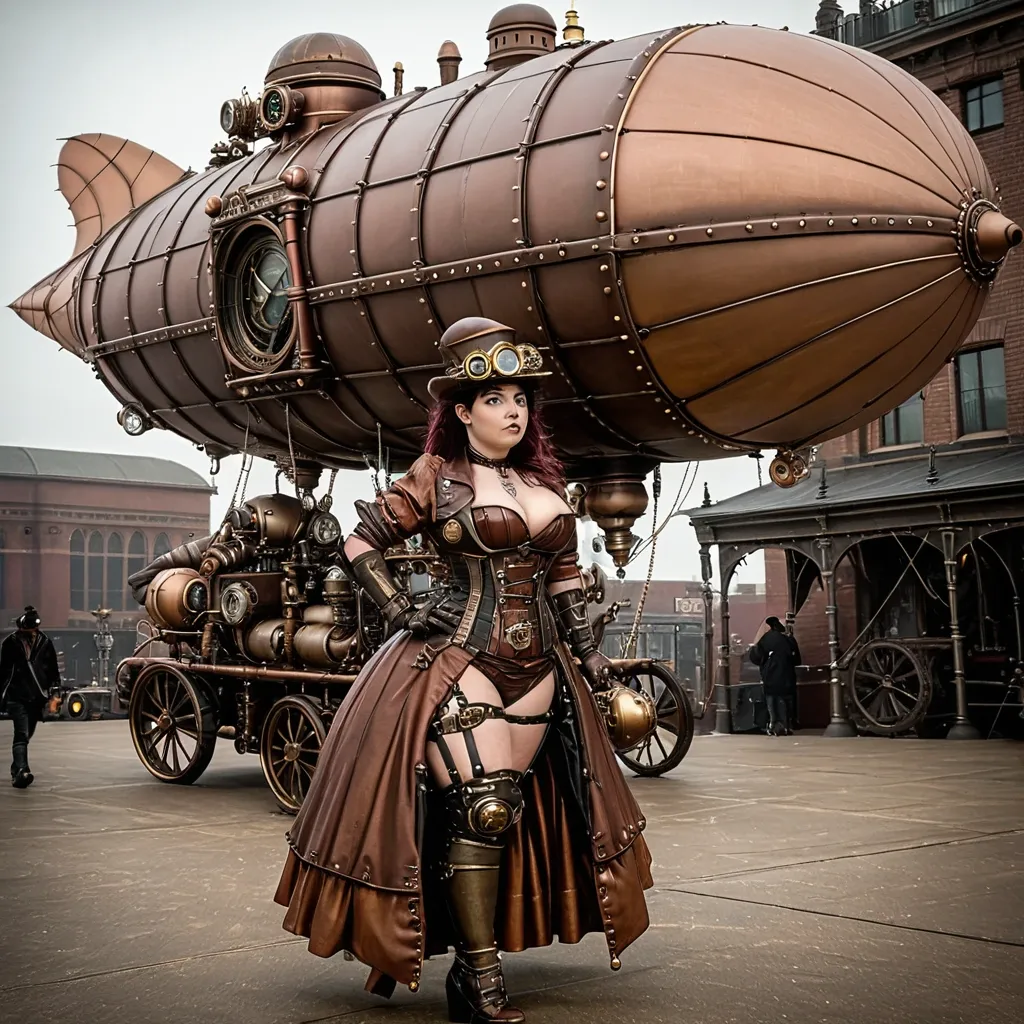 Generate Gorgeous female boss , bimbo , a very dark-skinned African-American woman , hourglass body , abnormally massive female bodybuilder , 42 years old , very sharp high cheekbones , gorgeous , close up , full lips , big booty , dark brown hair , dreadlocks stylish updo , feminine silhouette , too big breast , big booty , sexy thighs abs , silhouette , up close , flexing biceps , beautiful light-honey hazel eyes , legs are iconic and defining physical feature , both visually and in terms of combat ability.wearing an outfit that is a striking blend of elegance , power , and femininity , designed to command attention in any room. The suit is tailored to perfection , hugging the wearer’s curves with precision while emphasizing a structured silhouette. The fabric itself is a refined grey tweed patterned with subtle white grid lines , giving the suit a texture that feels both sophisticated and modern. The blazer features broad blue lapels and gold button accents , adding a luxurious touch that elevates the look beyond typical business attire. The matching high-waisted trousers elongate the frame , further enhancing the poised and commanding effect of the ensemble.The styling choices amplify the boldness of the suit. The inner blouse is a silky , greybutton-down shirt that complements the tweed’s tone while introducing a softer , feminine balance to the sharp tailoring of the jacket. The blouse peeks out neatly from under the blazer , maintaining elegance without drawing focus away from the suit’s commanding cut. Accessories are kept minimal yet intentional: a delicate layered gold necklace and hoop earrings that add glimmers of light and luxury without overpowering the outfit. The choice of voluminous , honey-brown braids cascading down her shoulders frames the face with both confidence and glamour , completing the commanding visual.Altogether , this look communicates a blend of authority and allure. It is business-ready yet fashion-forward , balancing corporate structure with vibrant femininity. The color palette blue , grey and gold avoids being overly delicate , instead embracing the richness of texture , structure , and presence. This is the kind of ensemble that speaks to ambition , sophistication , and personal style—ideal for someone who thrives in positions of influence but insists on expressing her individuality with bold elegance. It’s not just clothing—it’s a statement of power wrapped in grace. In luxury living legs that could crush a watermelon , skirt high boots are a bold and striking statement piece , crafted in glossy black patent leather that gives them a sleek , polished finish. Rising to just below the knee , the boots feature three adjustable buckle straps along the shaft , adding both edge and detail to their design. The towering stiletto heel , paired with a thick platform sole , creates an ultra-dramatic silhouette that elongates the leg and exudes power and confidence. With their combination of shine , height , and structure , these boots perfectly balance fierce femininity with high-fashion allure. Massive breast , massive cleavage , Up close shot ,