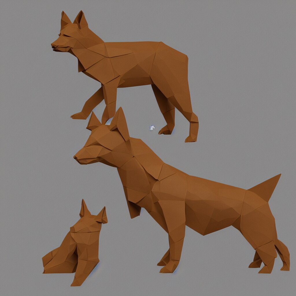 3 d rendering of japanese cardboard origami of simple shape of german shepherd , 2 d image , trending on artstation ,