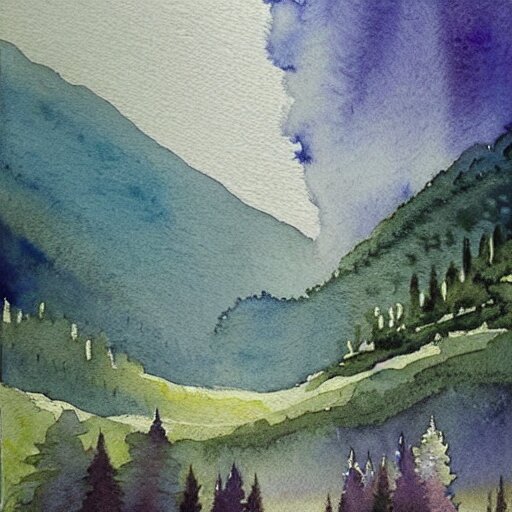 a beautiful watercolor painting an epic appalachian wilderness at dawn , godrays , mystical , deep shadows , epic scale ,