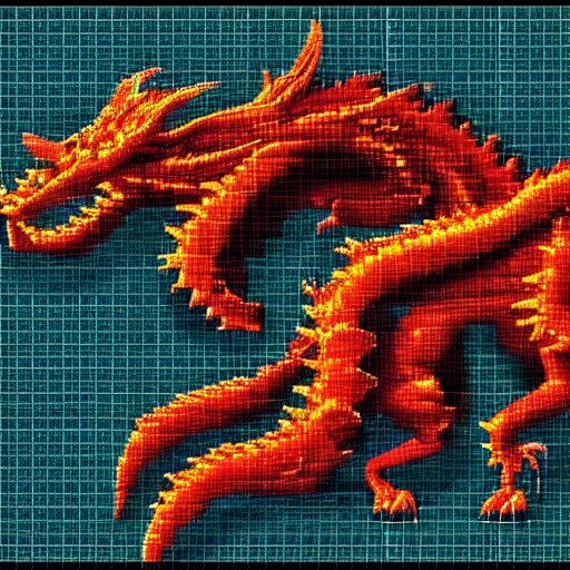 blueprint of a fantasy dragon pixel art ,