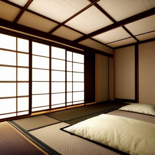 still photo of a japanese guest room , highly detailed , photorealistic portrait , bright studio setting , studio lighting , crisp quality and light reflections , unreal engine 5 quality render ,