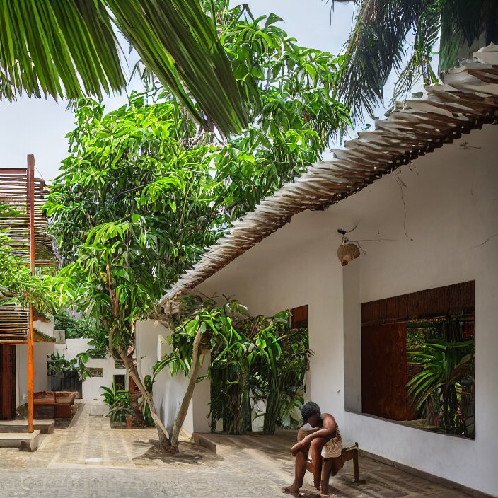 idyllic town house on a quiet street in lagos , tropical architecture with sun shading and pergolas , modernist african building , contemporary architecture , architectural photography , canon eos r 3 , telephoto lens , sigma 5 0 0 mm f / 5 , iso 2 0 0 , 1 / 1 6 0 s , 8 k , raw , unedited , in - frame ,