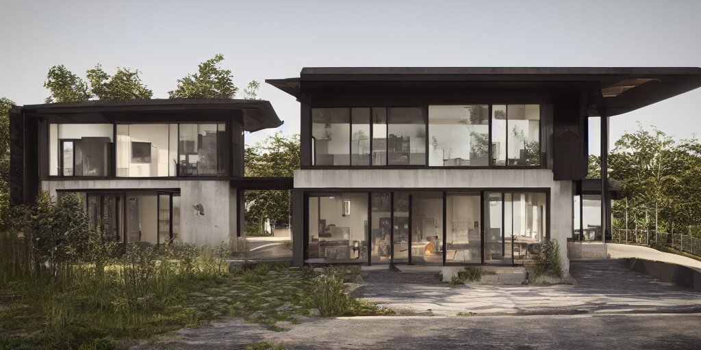 modern gridhouse , forte gimenes marcondes ferryz arquitetos detailed , octane render , photo realism , ray tracing , photo realism ,