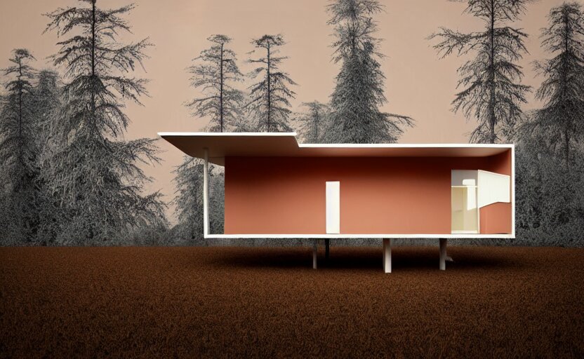 one single stand alone huge hyperdetailed minimalist home , seen from the long distance , at night. in a wood made of paper and plastics. maximalist unexpected elements. free sky in plain natural warm tones. 8 x 1 6 k hd mixed media 3 d collage in the style of a childrenbook illustration in pastel tones. matte matte background. no frame hd ,