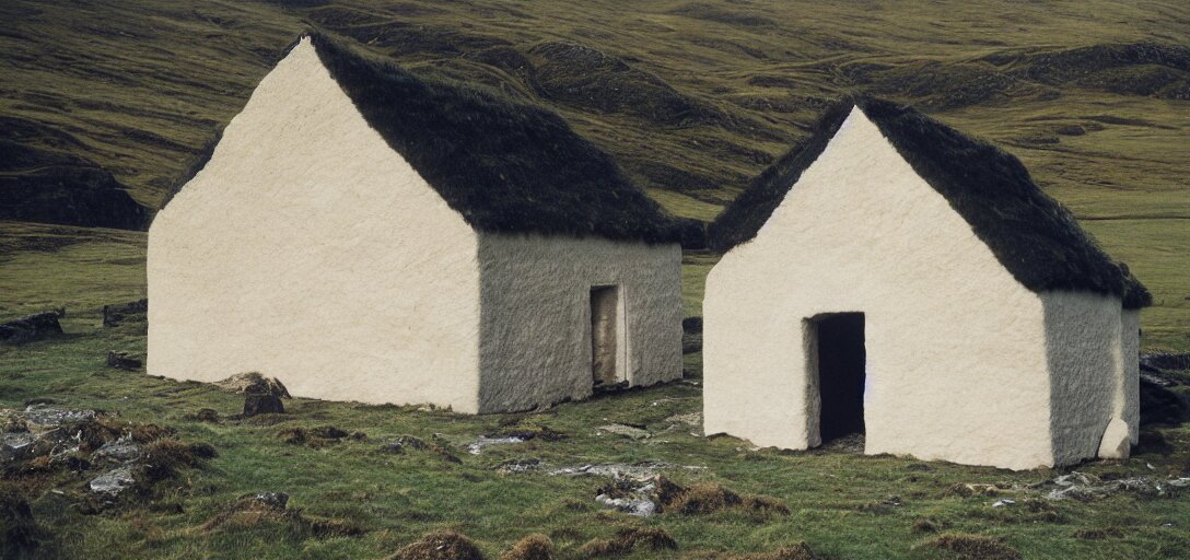 scottish blackhouse constructed of ivory - white pentelic marble. fujinon premista 1 9 - 4 5 mm t 2. 9. portra 8 0 0. ,