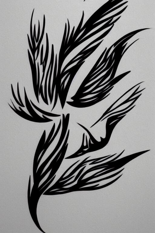 a simple artistic tattoo design of minimalist flying birds , black ink , abstract geometric logo ,