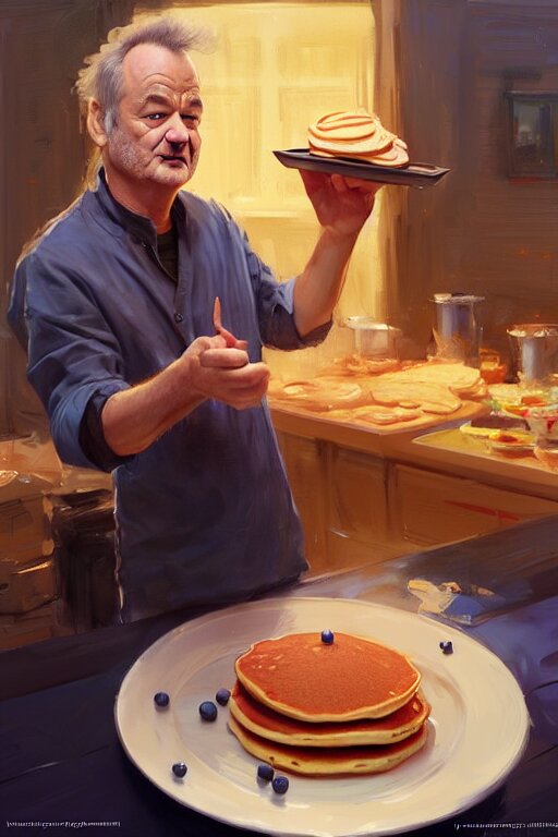 bill murray making pancakes animation pixar style , by magali villeneuve , artgerm , jeremy lipkin and michael garmash , rob rey and kentaro miura style , golden ratio , trending on art station ,