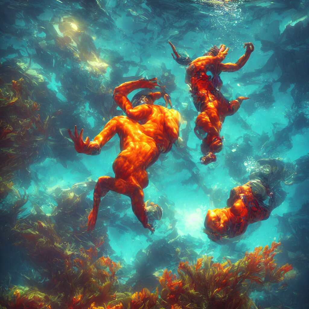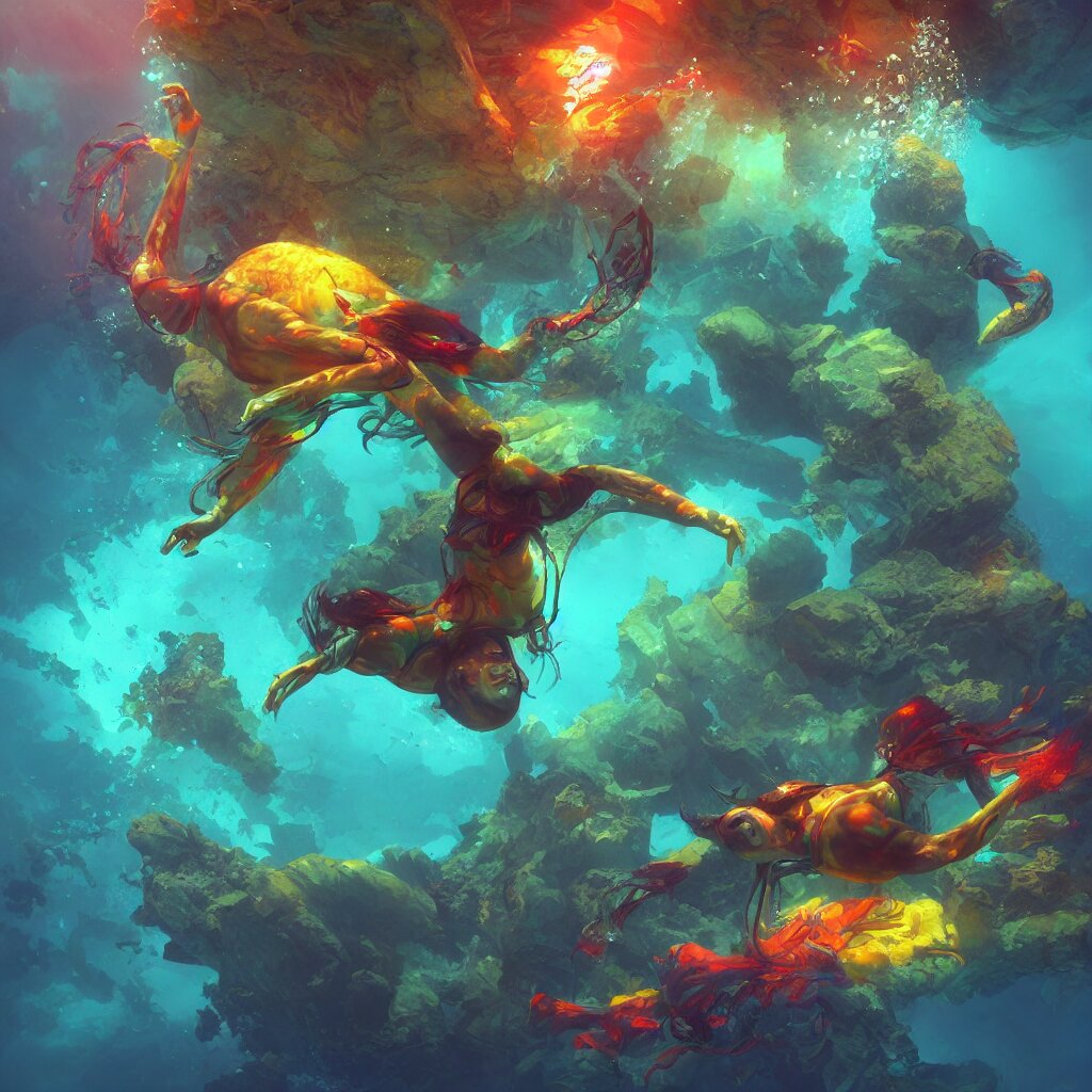 man underwater floating , vivid colors , sharp focus , digital art , Unreal Engine , Dramatic Lighting by Brom , trending on Artstation ,