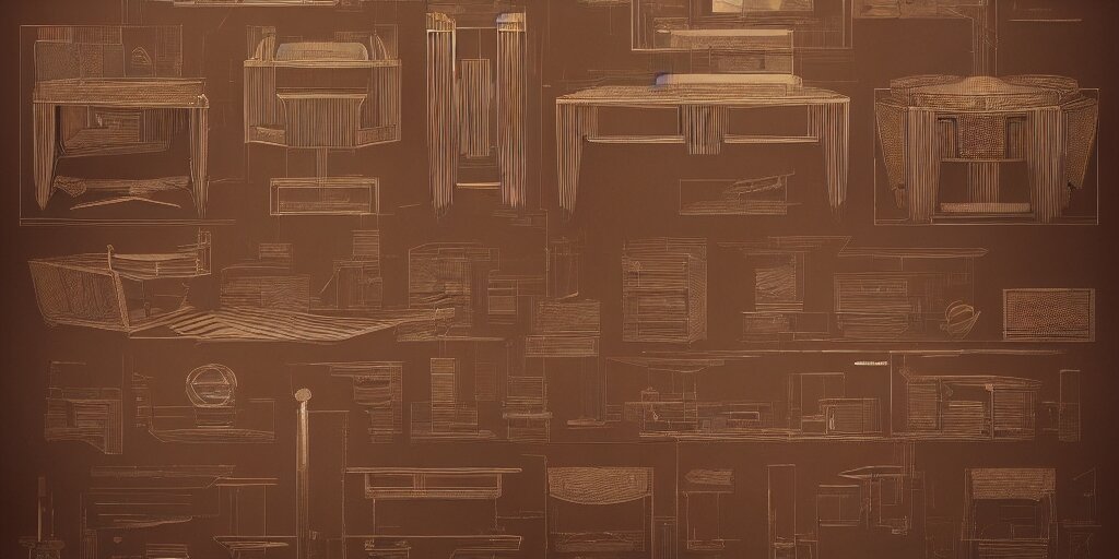 furniture design art deco , furniture design sheet , Moebius , Greg Rutkowski , Zabrocki , Karlkka , Jayison Devadas , Phuoc Quan , trending on Artstation , 8K , ultra wide angle , zenith view , pincushion lens effect ,