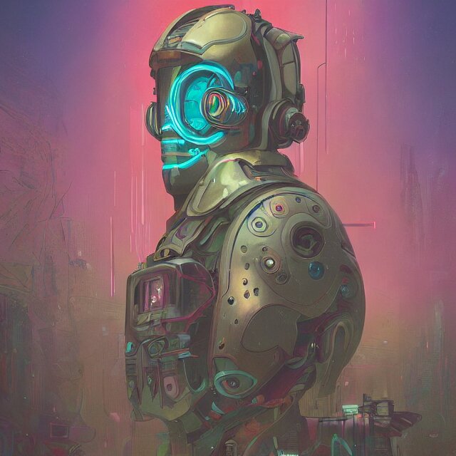 a beautiful portrait painting of a ( ( ( cyberpunk ) ) ) armor by simon stalenhag and pascal blanche and alphonse mucha and nekro. in style of digital art. colorful comic , film noirs , symmetry , brush stroke , vibrating colors , hyper detailed. octane render. trending on artstation ,