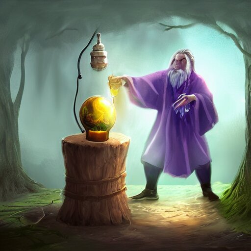 wizard making a potion , digital art , 4 k , fantasy , ,