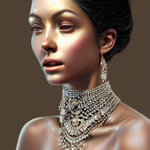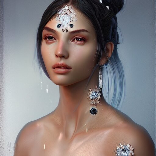 a beautiful portrait of a diamond goddess with glittering skin , a detailed painting by greg rutkowski and raymond swanland , behance contest winner , photorealism , behance hd , daz 3 d , zbrush ,