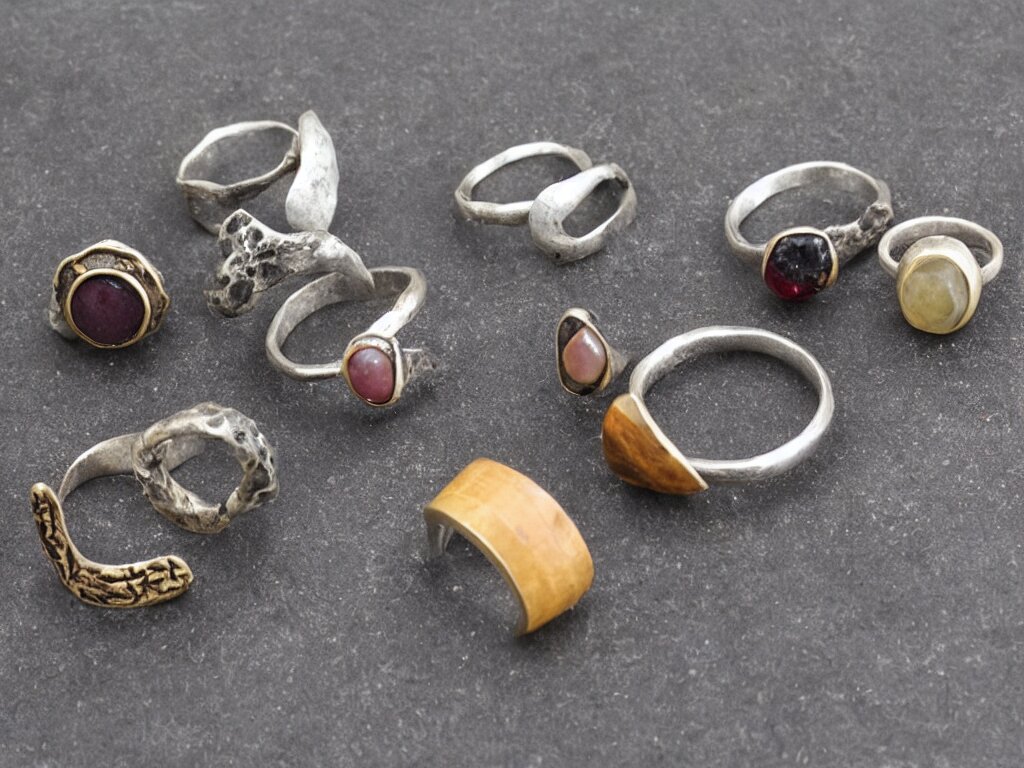 innovative rustic hand made rings hand crafted from silver and brass and natural gemstones ,