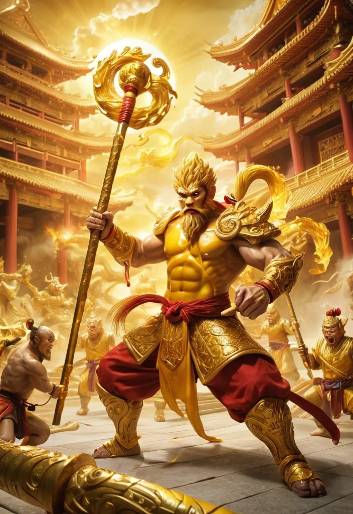 孙悟空挥舞金箍棒大闹天宫 ,