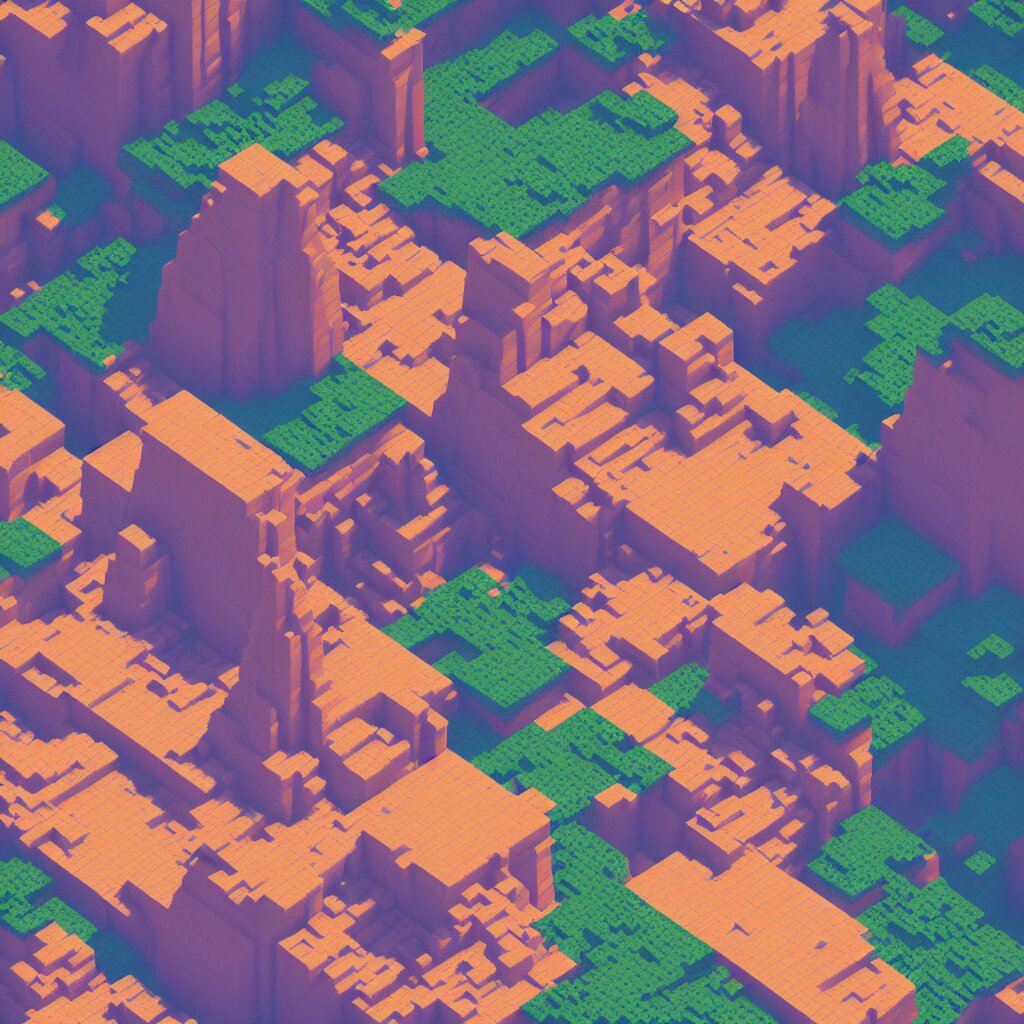 voxel art of giant floating triangular monolith in valley by james gilleard and madmaraca , textured , detailed , beautiful , 8 k wallpaper ,