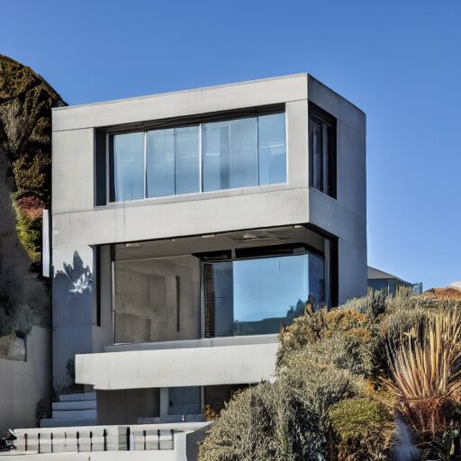 a modern concrete mansion on the bluffs overlooking downtown san francisco ,