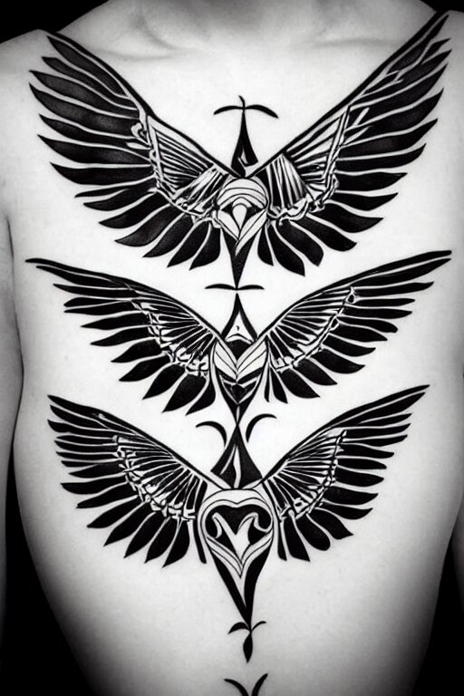 a beautiful tattoo design of minimalist flying swallows flying around geometric spirals , black ink , abstract logo , line art ,