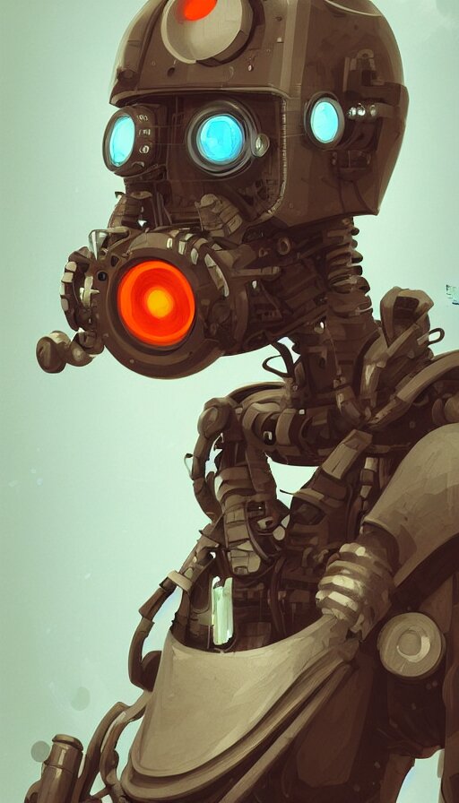 a dieselpunk robot , portrait , humanoid , sharp focus , james gilleard , cinematic , game art , extremely detailed digital painting ,