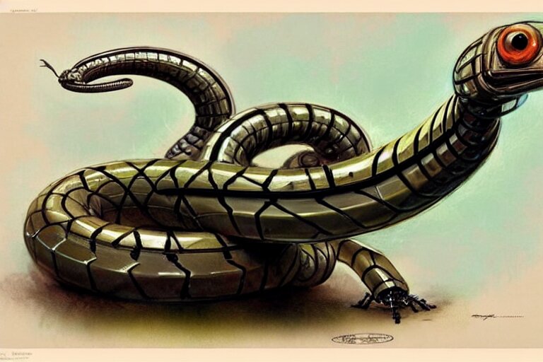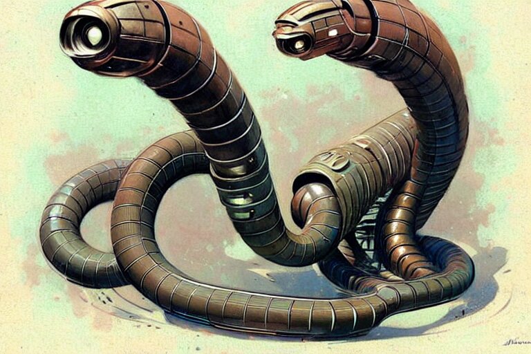 ( ( ( ( ( 1 9 5 0 s retro future robot snake. muted colors. ) ) ) ) ) by jean - baptiste monge!!!!!!!!!!!!!!!!!!!!!!!!!!!!!! ,