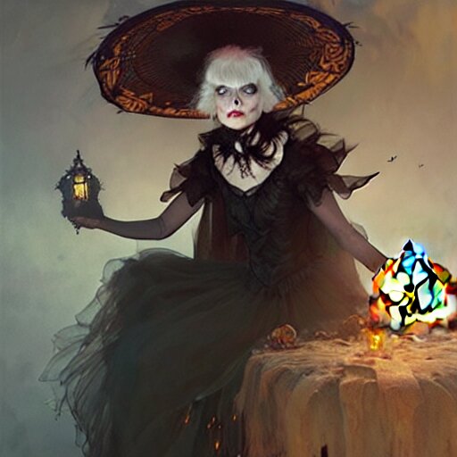 halloween funny witch woman , fantasy magic , undercut hairstyle , intricate , elegant , sharp focus , illustration , highly detailed , digital painting , concept art , matte , art by wlop and artgerm and greg rutkowski and alphonse mucha , masterpiece ,