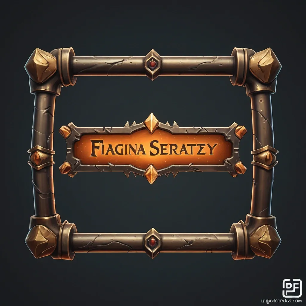 blurry , low quality , ugly , deformed , bad anatomy , extra fingers , photorealistic , hyperrealistic , anime , cartoon , modern objects , text , watermark , logo , oversaturated Prologue buttons (Next / Continue / Skip). Medieval rectangular button , metal frame , dark background , fantasy visual novel style , empty center for text , horizontal stylized realism , digital painting , high-fantasy mobile game art , dark palette with warm orange and gold accents , no text , no watermark , premium 2D illustration ,