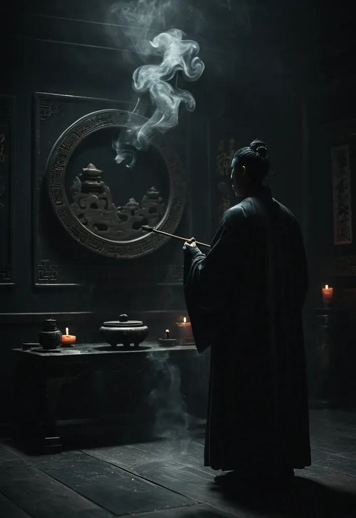 A lone astronaut , clad in a tattered , nebula-stained suit , stands before a colossal , Eldritch vortex staircase shaped monolith on a desolate , alien shore. The monolith emits an unearthly , vortex pulsating green light that warps the fabric of reality around it. In the distance , impossible geometric structures pierce a sky swirling with cosmic dust and the eyes of unknown entities. The scene is rendered in the style of highly detailed concept art , with photorealistic painting techniques and dramatic , cinematic lighting. ,