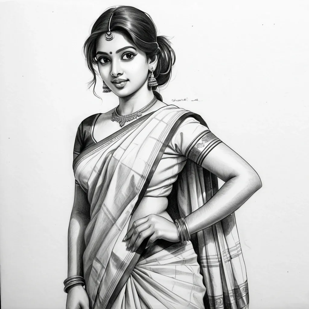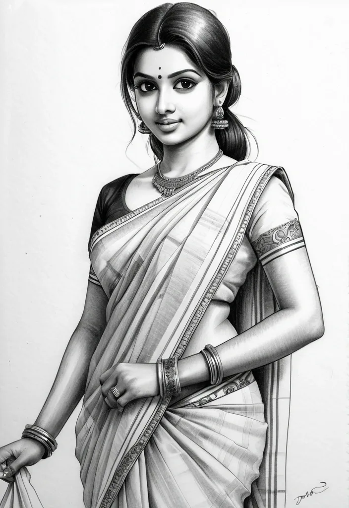 A young woman stands on the shore of the sea , dressed in simple yet elegant clothing. Her garments gently flutter in the sea breeze , and her expression is calm and contemplative. The detailed attire of the woman evokes a mystical traveler or an unassuming heroine , with subtle magical particle effects gently enhancing the enchanting atmosphere. In the background , the sea and a nearby large sailing ship can be seen. The woman's dynamic pose , combined with the use of light and shadows , creates an epic and immersive scene. This illustration is rendered in a classical pencil sketch style , emphasizing intricate details and smooth transitions between light and shadow. The fine linework captures the contours of the woman's elegant clothing and the subtle magical particle effects , while the soft shading adds depth and texture to the scene. The background features the vast sea and a large sailing ship , depicted with varying line weights to enhance the sense of distance and scale. The overall composition is balanced and minimalistic , focusing on the realistic portrayal of the woman's serene expression and the dynamic pose. The black-and-white realistic style brings out the timeless beauty and mystique of the scene , perfect for traditional art lovers seeking a detailed and artistic representation. ,