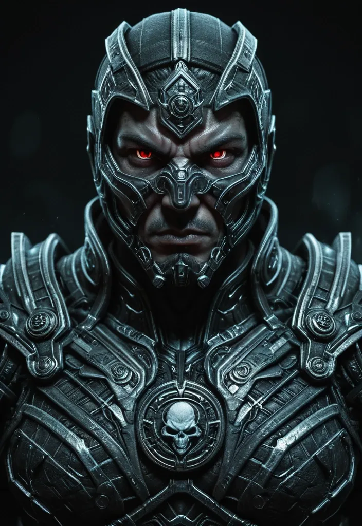 MORTAL KOMBAT TRIBUTE /// photo , portrait style , intricate , symmetrical face front view , dark fantasy , hyperrealistic render details , ultra detailed cyberpunk warrior ("Character") from Mortal Kombat , ("Color") tint , Ni-Oh , high contrast , 8k photographic style , matte painting , octane render , blured background , HD , soft ambiant light ,