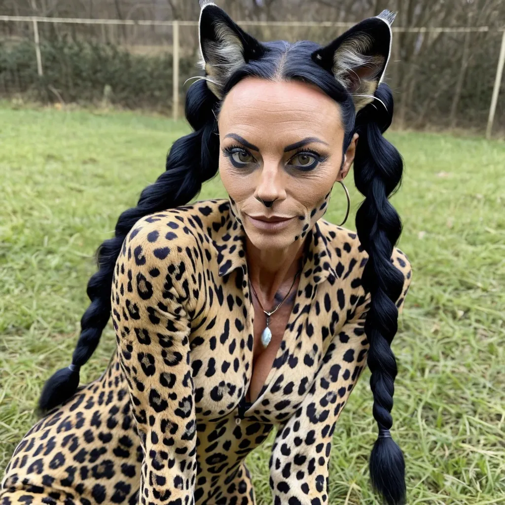 Фурри сервал с меланизмом , девушка , с двумя косичками ,