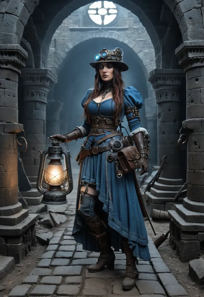Prompt: fantasy portrait of a young girl with long flowing auburn hair , radiant golden eyes , wearing a sparkling blue dress , holding a glowing flower , surrounded by golden magical particles and bokeh , ethereal soft lighting , fantasy atmosphere , ultra-realistic anime style , masterpiece , highly detailed , cinematic glow , 8K Negative Prompt: blurry , cartoonish , low detail , overexposed , deformed hands , extra limbs , watermark , text , harsh shadows ,