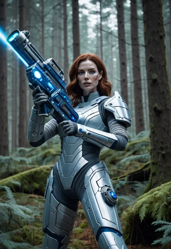 Fashionable burgundy battalion-style heels and burgundy stockings worn by a beautiful cyborg with mechanical details and neon eyes , holding a book and looking at it while sitting on a bed with her hand in her hair. The bedroom features burgundy flowers , a burgundy planet , a burgundy moon visible through the window , and wisps of burgundy smoke. Dark Cyberpunk aesthetic with cosmic , progressive industrial elements , ice fractal fog , and liquid nitrogen. Cinematic lighting with Minecraft-inspired highlights and a gradient color scheme of white , blue-black , and deep blue. 8k HDR professional photo , subject focus on the body , with background elements of a tank top , midriff , knee-high leg warmers , stripped side ties , and bare feet. A fashionable cyborg with mechanical enhancements and neon eyes , wearing battalion-style burgundy heels , burgundy stockings , and a midriff-baring tank top , sits on a bed in a dark , cosmic Cyberpunk city bedroom. Burgundy smoke and flowers surround the scene , with a burgundy planet and moon visible in the background. The cyborg holds a book , looking at it intently , with one hand in their hair. The lighting is inspired by Minecraft , with a gradient of white , blue-black , and deep blue , creating an 8k HDR , Monumental , dark fantastic atmosphere. Photorealistic style , with sharp focus on the body. ,