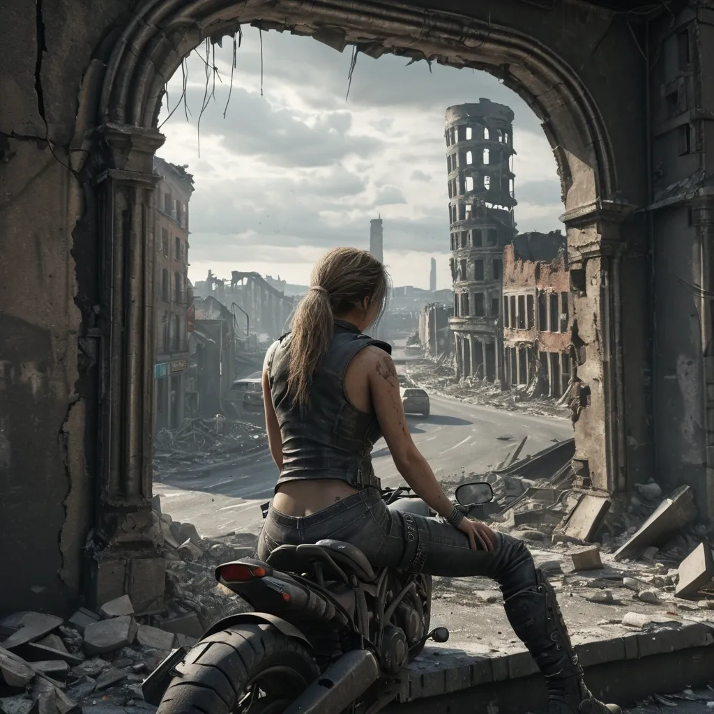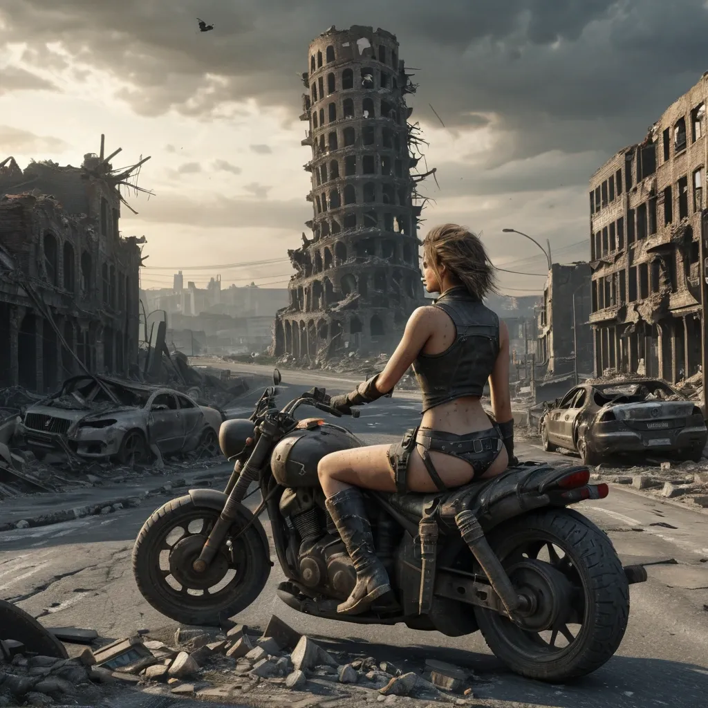 Beautiful brunette , dark brown hair , bright blue eyes , tan leather short shorts , tan halter , extra large cleavage , wearing a black cowboy duster being blown in the wind , gun belt with two nickel plated revolvers , knee high black cowboy boots , black cowboy hat , standing on main street in a wild west town ,