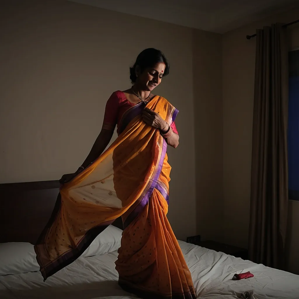 Highly detailed , full-body portrait of Marvel’s Wolverine. Ultra-realistic , cinematic rendering. Jenn rosa , biting her lip , 48 years old , brown hair , Indian hair style , stands in a powerful and aggressive pose , exuding raw strength and an unstoppable warrior presence. Iconic brown and silver Saree , enhanced with realistic wear-and-tear , scratches , and fabric abrasions. Reinforced armor seamlessly integrated into his costume , maintaining a sleek yet battle-ready look. Rugged , scarred face with piercing , intense eyes , burning with fury and determination. Wrinkles , battle scars , and stubble add depth and realism. Wild , untamed hair , individually detailed for ultra-realistic rendering. Muscular physique highly defined , veins visible under the skin , showing raw power and resilience. ,