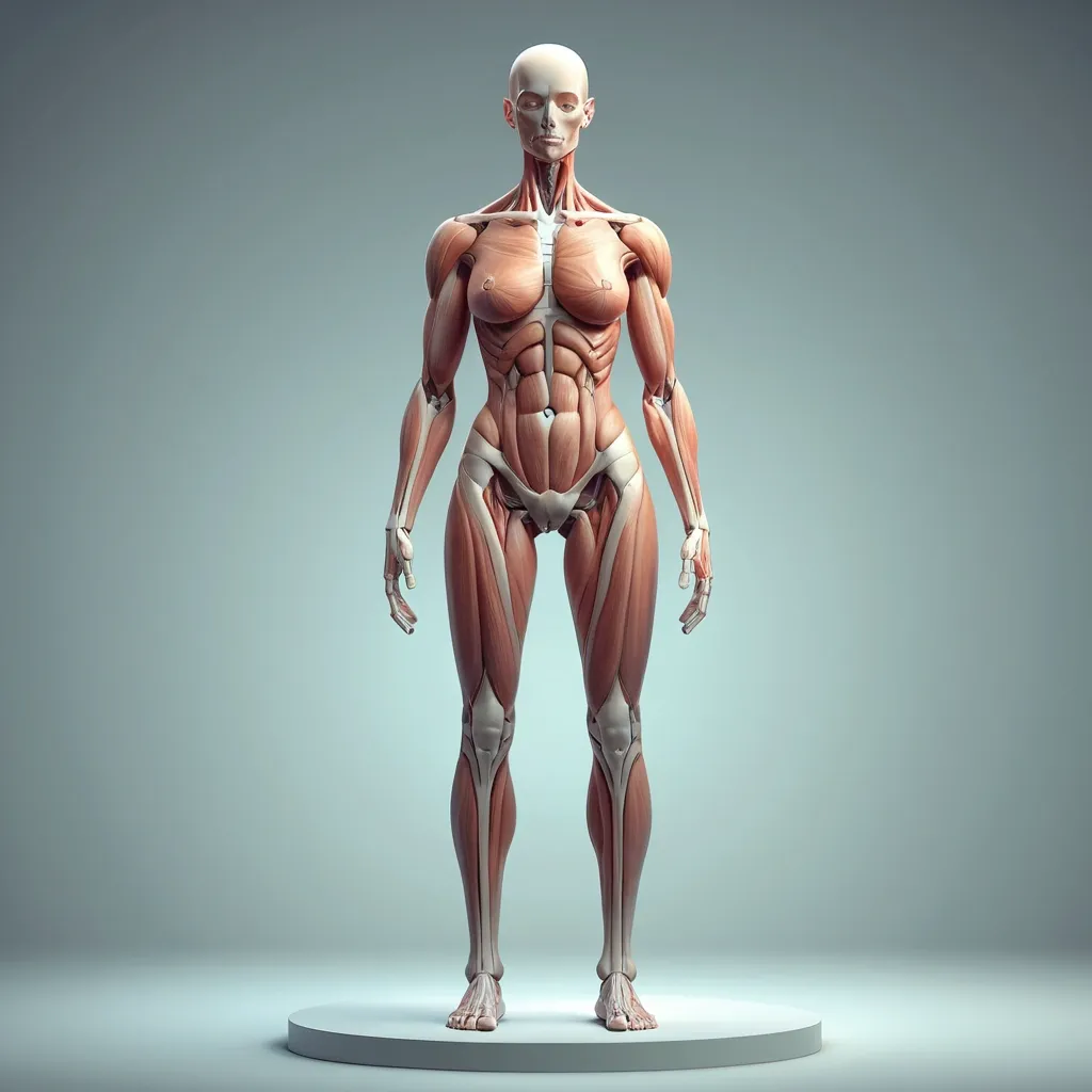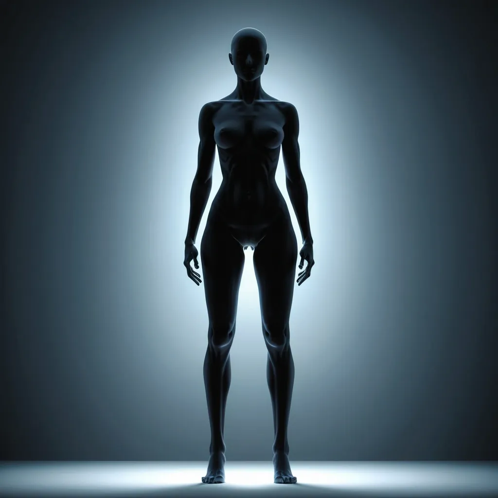 a hyper-realistic full-body female figure standing upright , futuristic biological perfection , symmetrical , anatomically accurate , highly detailed , ideal clitoral anatomy (internal and external) , perfect structure with ideal elasticity , smooth luminous skin , soft ambient lighting , artistic anatomy illustration , concept art style , photorealistic , realistic genitalia , hormonally balanced , visible pelvic floor musculature , elegant anatomy , clinical yet beautiful , 8k ultra detail ,