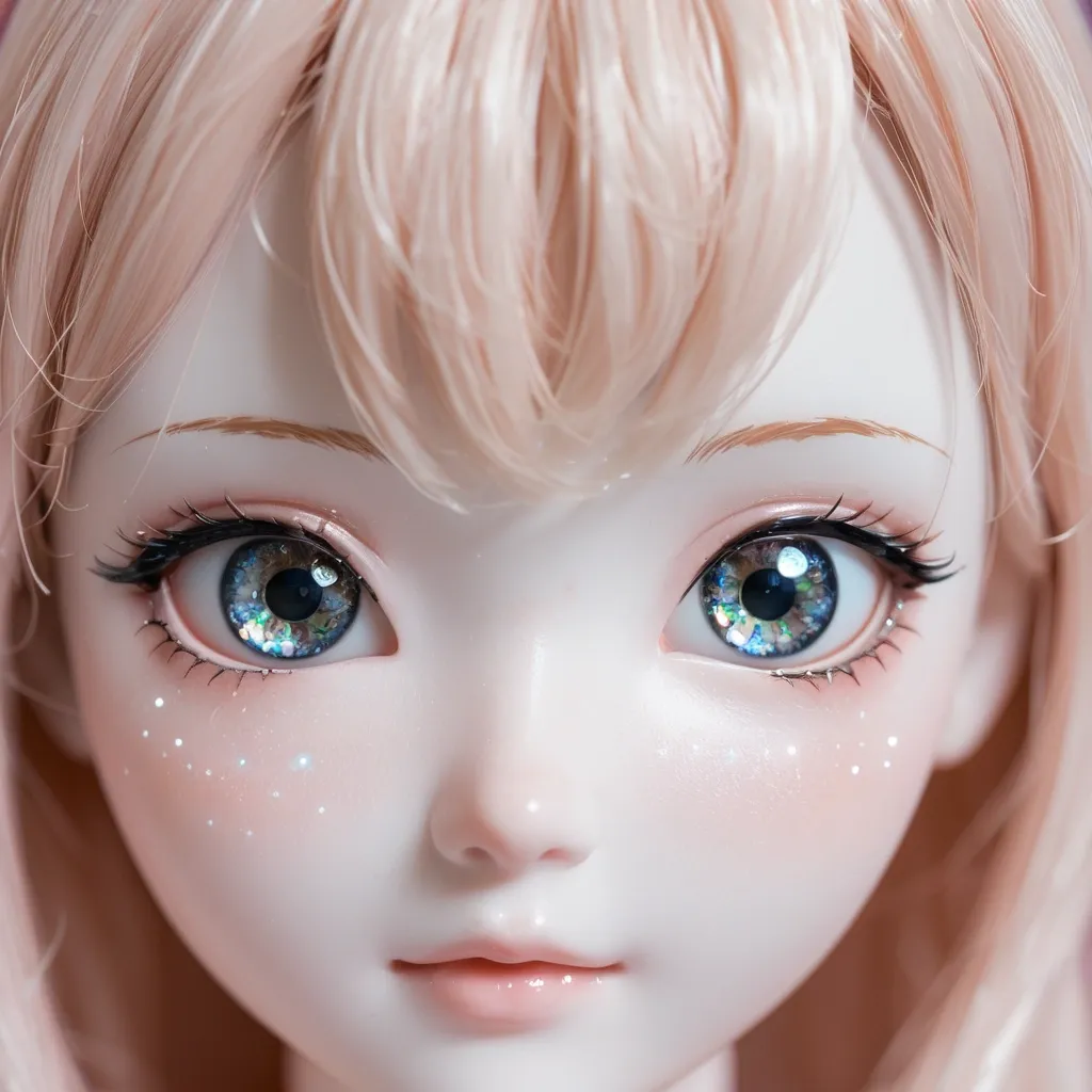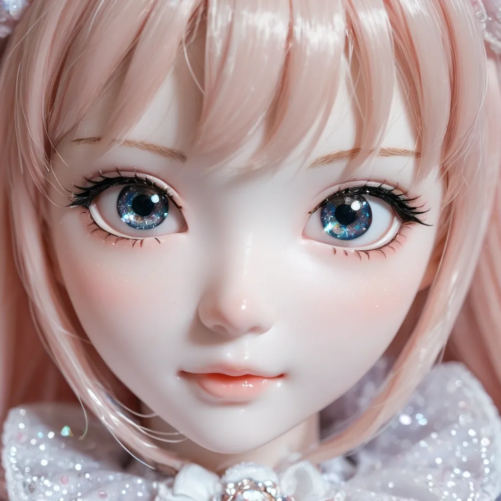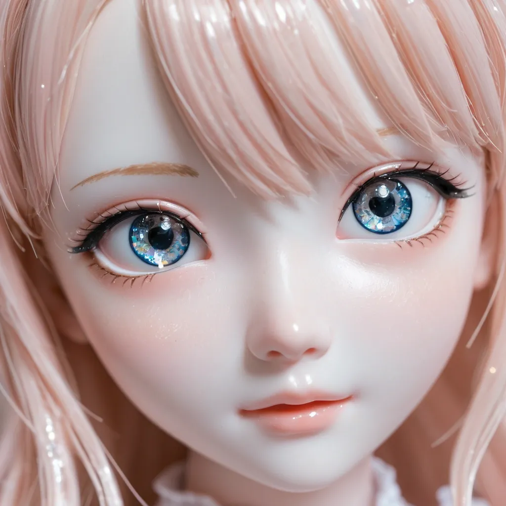 Ultra-realistic portrait of a young woman outdoors during golden hour , natural beauty , soft warm skin tones , detailed skin texture with subtle glow , large blue-gray eyes , long eyelashes , defined eyebrows , soft pink makeup. Long blonde hair in a high ponytail , a few loose strands framing her face , long blue ribbon tied in her hair. Delicate oval face , soft nose and youthful lips , light blush on cheekbones. Wearing a white lace-trimmed top with thin straps , semi-transparent fabric details. Cinematic composition , shallow depth of field , smooth bokeh background , warm sunset lighting , gentle rim light on hair , 50mm portrait lens , f/1.8 , 8K hyperreal photography , precise focus on eyes , soft dynamic highlights and shadows. Mood: serene , soft expression , natural elegance ,
