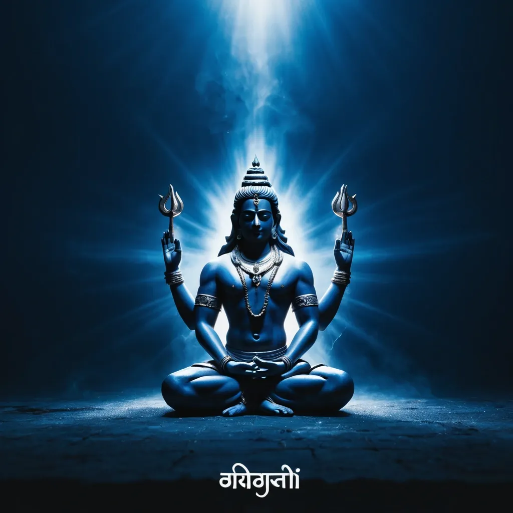 Create a cinematic , high-impact Instagram creative (1:1) for Maha Shivratri in ZFunds brand theme. Background in deep ZFunds blue , dark and moody , with subtle smoke and light rays. A large metallic Trishul as the central hero element , standing tall and powerful , slightly glowing at the edges. Soft divine light falling from above , creating a spiritual aura. Minimal composition , no clutter , no extra symbols. Text in clean white typography: MAHA SHIVRATRI A short blessing line below. Premium , devotional , powerful , cinematic lighting , Instagram-ready. ,