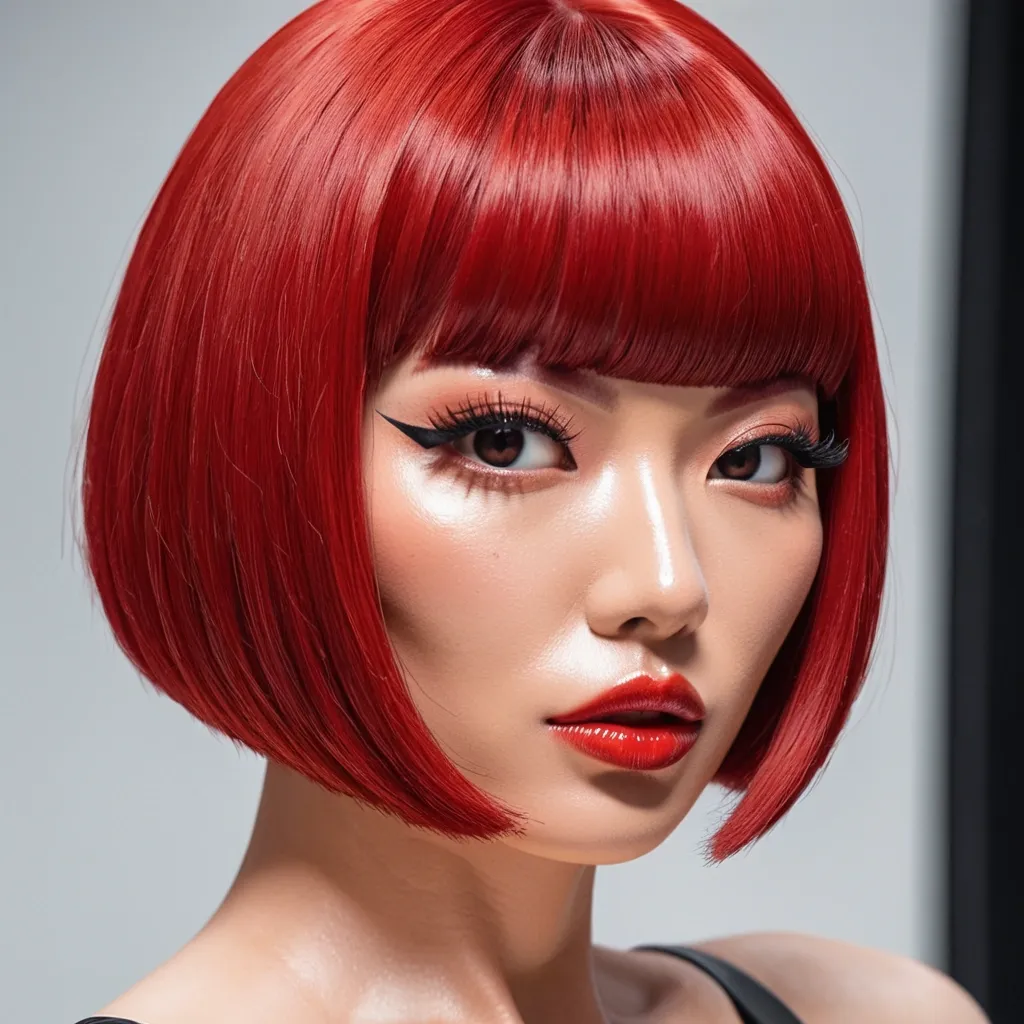 Generate Gorgeous female boss , Japanese woman , pointy face , bimbo , hourglass body , abnormally massive female bodybuilder , gorgeous , close up , full lips , big booty , red hair breast , short bob-cut , bangs cover forhead design hair , feminine silhouette , too big breast , big booty , sexy thighs abs , silhouette , up close , flexing biceps , beautiful green eyes , legs are iconic and defining physical feature , both visually and in terms of combat ability.wearing an outfit that is a striking blend of elegance , power , and femininity , designed to command attention in any room. The suit is tailored to perfection , hugging the wearer’s curves with precision while emphasizing a structured silhouette. The fabric itself is a refined grey tweed patterned with subtle white grid lines , giving the suit a texture that feels both sophisticated and modern. The blazer features broad blue lapels and gold button accents , adding a luxurious touch that elevates the look beyond typical business attire. The matching high-waisted trousers elongate the frame , further enhancing the poised and commanding effect of the ensemble.The styling choices amplify the boldness of the suit. The inner blouse is a silky , greybutton-down shirt that complements the tweed’s tone while introducing a softer , feminine balance to the sharp tailoring of the jacket. The blouse peeks out neatly from under the blazer , maintaining elegance without drawing focus away from the suit’s commanding cut. Accessories are kept minimal yet intentional: a delicate layered gold necklace and hoop earrings that add glimmers of light and luxury without overpowering the outfit. The choice oframes the face with both confidence and glamour , completing the commanding visual.Altogether , this look communicates a blend of authority and allure. It is business-ready yet fashion-forward , balancing corporate structure with vibrant femininity. The color palette blue , grey and gold avoids being overly delicate , instead embracing the richness of texture , structure , and presence. This is the kind of ensemble that speaks to ambition , sophistication , and personal style—ideal for someone who thrives in positions of influence but insists on expressing her individuality with bold elegance. It’s not just clothing—it’s a statement of power wrapped in grace. In luxury living legs that could crush a watermelon , skirt high boots are a bold and striking statement piece , crafted in glossy black patent leather that gives them a sleek , polished finish. Rising to just below the knee , the boots feature three adjustable buckle straps along the shaft , adding both edge and detail to their design. The towering stiletto heel , paired with a thick platform sole , creates an ultra-dramatic silhouette that elongates the leg and exudes power and confidence. With their combination of shine , height , and structure , these boots perfectly balance fierce femininity with high-fashion allure. Gorgeous brown eyes , big lips glossy lips , enormous breast , enormous butt In a softly lit , tranquil room scented with lavender and warmed by candlelight , a Japanese woman dressed in a modest , neatly wrapped kimono stands beside a low wooden massage table , her movements calm and practiced as she gives a therapeutic massage to an African-American man resting comfortably beneath a crisp white sheet. The space feels like a traditional spa retreat , with natural wood accents , folded linens , and soothing décor that invites stillness and trust. Her posture is respectful and focused , hands working with steady , deliberate care , while he lies relaxed and at ease , the entire scene conveying quiet professionalism , cultural elegance , and a deep sense of restorative calm , enormous butt , enormous breast , stacked hourglass silhouette ,