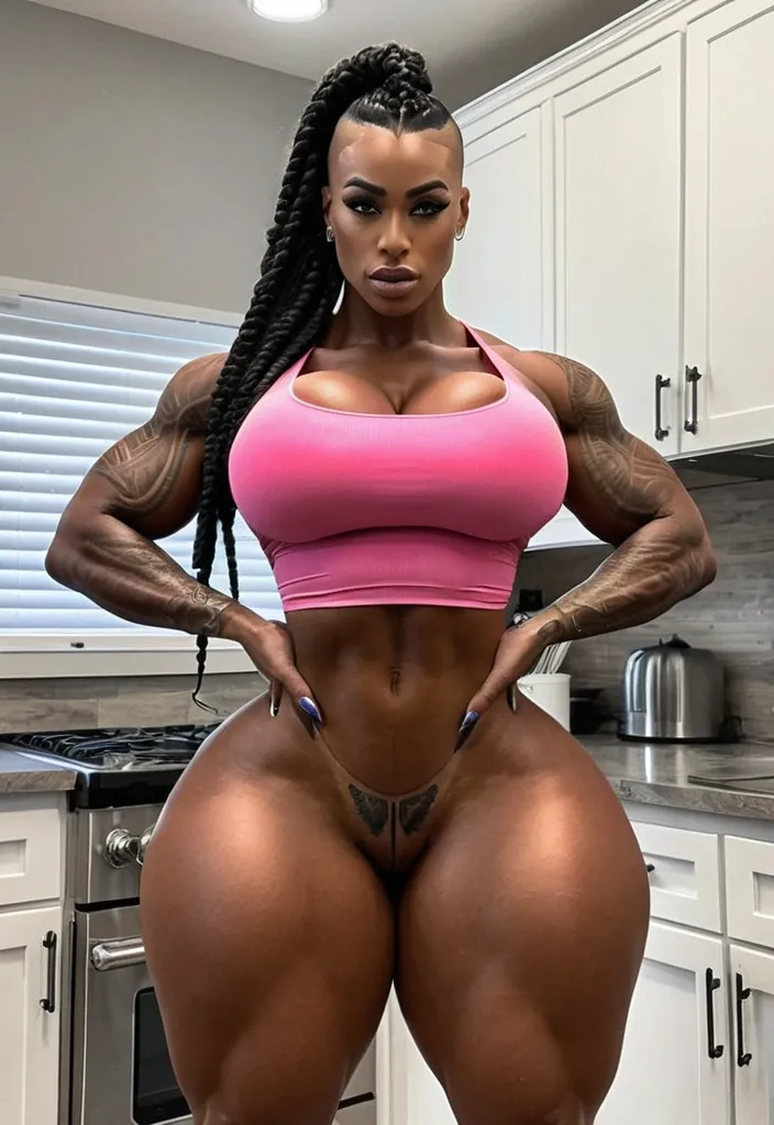 24 years old , dark-skinned African-American woman — extremely beautiful , with a presence that feels quietly dangerous and quietly royal at the same time. She has that soft glow in her skin that looks effortless , like she wakes up looking like this every day without trying , but everyone knows she still probably puts in discipline the old fashioned way. Her bone structure is model tier… cheekbones that could cut through pride , a jawline that says she doesn’t bend for just anybody , and soft lips that hold mystery and restraint all at once. Her braided Mohawk bald design on the side , is cropped close , styled in textured waves that shape her face like an artist’s finishing brush stroke. It gives her a striking , modern elegance — feminine , but with that slight edge that tells you she’s not the type anyone ever controls. Her eyebrows are naturally bold and shaped sharply , framing her honey hazel eyes that practically glow with their own weather system. Those eyes… you could lose a fight in those eyes before she ever speaks a word.She has luminous , glossy skin that reflects light like polished bronze catching early morning sun. Natural freckles sprinkle just lightly across her cheeks , softening the intimidation factor with a hint of youthful innocence. The way the light hits her face makes her look sculpted — like an ultra realistic painting brought to life. Everything about her looks intentional… but also like she was born this way.There’s also this quiet calm in her expression — not emotional weakness — but a poised , unshakeable stillness that only comes from knowing exactly who you are and not needing to defend it. She looks like the woman who never rushes into noise… she waits , she observes , she lets the room shift around her while she remains unmoved. That alone is power — and she wears it naturally like an old soul who understands her worth in ways other people are still scrambling to figure out , blonde short short dreadlocks hair , muscular body builder woman , abnormally massive 24 years old , dark-skinned African-American woman — extremely beautiful , with a presence that feels quietly dangerous and quietly royal at the same time. She has that soft glow in her skin that looks effortless , like she wakes up looking like this every day without trying , but everyone knows she still probably puts in discipline the old fashioned way. Her bone structure is model tier… cheekbones that could cut through pride , a jawline that says she doesn’t bend for just anybody , and soft lips that hold mystery and restraint all at once. Her braided Mohawk bald design on the side , is cropped close , styled in textured waves that shape her face like an artist’s finishing brush stroke. It gives her a striking , modern elegance — feminine , but with that slight edge that tells you she’s not the type anyone ever controls. Her eyebrows are naturally bold and shaped sharply , framing her honey hazel eyes that practically glow with their own weather system. Those eyes… you could lose a fight in those eyes before she ever speaks a word.She has luminous , glossy skin that reflects light like polished bronze catching early morning sun. Natural freckles sprinkle just lightly across her cheeks , softening the intimidation factor with a hint of youthful innocence. The way the light hits her face makes her look sculpted — like an ultra realistic painting brought to life. Everything about her looks intentional… but also like she was born this way.There’s also this quiet calm in her expression — not emotional weakness — but a poised , unshakeable stillness that only comes from knowing exactly who you are and not needing to defend it. She looks like the woman who never rushes into noise… she waits , she observes , she lets the room shift around her while she remains unmoved. That alone is power — and she wears it naturally like an old soul who understands her worth in ways other people are still scrambling to figure out , blonde short short dreadlocks hair , muscular body builder woman , abnormally massive woman , enormous breast , enormous buttThe low-cut top emphasizes her posture , drawing attention to her chest as she gazes directly ahead. Squeezing her breast together , standing in kitchen , enormous butt , , Enormous breast , facing camera , She’s wearing a cropped pink top that’s extremely tight and lifted up , exposing most of her chest. braided Mohawk bald design on the side , She pairs it with very short , fitted denim shorts that are slightly frayed at the bottom , giving a casual summertime look. Powerful hourglass body , enormous butt woman , enormous breast , enormous buttThe low-cut top emphasizes her posture , drawing attention to her chest as she gazes directly ahead. Squeezing her breast together , standing in kitchen , enormous butt , , Enormous breast , facing camera , She’s wearing a cropped pink top that’s extremely tight and lifted up , exposing most of her chest. braided Mohawk bald design on the side , She pairs it with very short , fitted denim shorts that are slightly frayed at the bottom , giving a casual summertime look. Powerful hourglass body , enormous butt ,