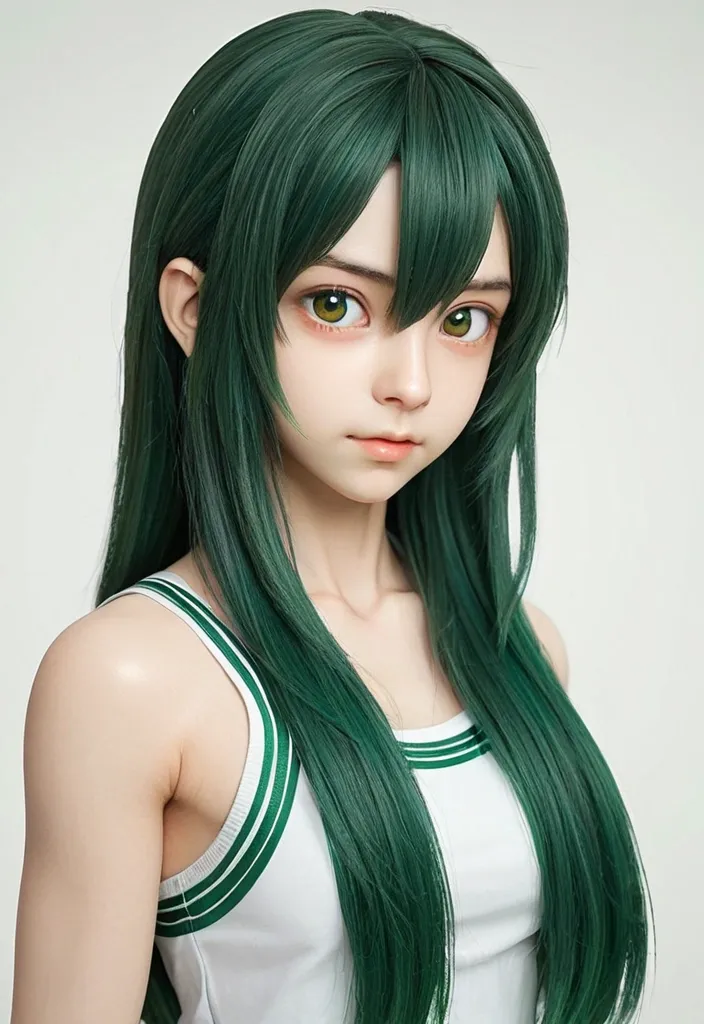 MY HERO ACADEMIA , ANIME eye color : black hair color : dark purple + white streak hairstyle : wavy shag mullet long + bangs race : asian ethnicity : Caribbean + Japanese skin tone : dark brown + freckles accessories: rings + nose piercing + tongue piercing + snake arm tattoo + ear piercings BLACK WOMEN ,