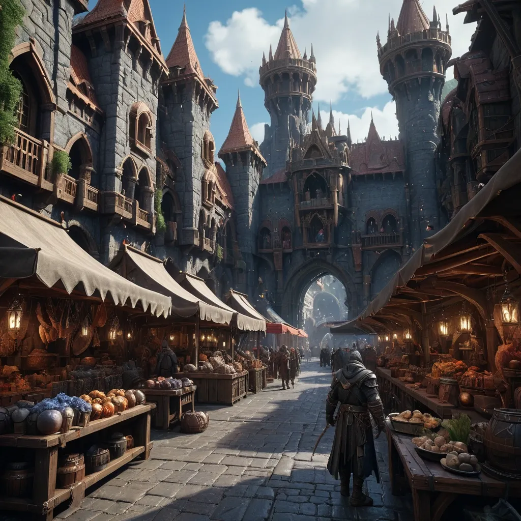 dnd fantacy Market , high fantasy , high resolution , high quality , photorealistic , hyperealistic , detailed , detailed matte painting , deep color , fantastical , intricate detail , splash screen , complementary colors , fantasy concept art , 8k resolution trending on Artstation Unreal Engine 5 ,
