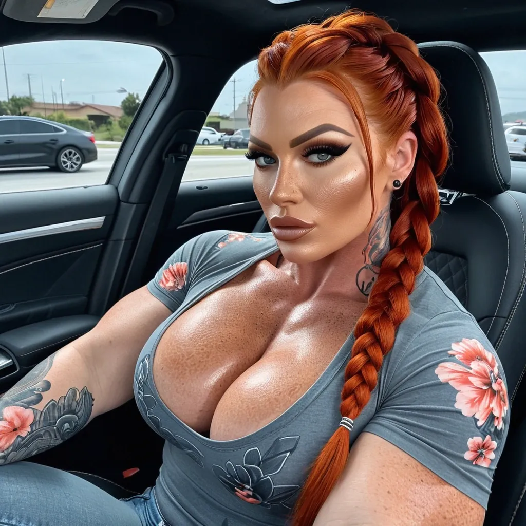 Hyper realistic portrait of a tribal warrior woman with an intense , piercing gaze and emerald green eyes that shine like gemstones. Her face is adorned with ritual paint in black and red tones , featuring geometric patterns and runic symbols that evoke ancestral power. Her hair is braided and interwoven with metallic rings , and she wears a fur-textured crown or headdress resembling wolf or fox pelt , reinforcing her connection to nature and her spirit animal. The lighting highlights the makeup details and skin texture , creating a dramatic and mystical atmosphere. The background is dark and blurred , drawing full attention to her face , which radiates strength , wisdom , and determination. Artistic style: magical realism with influences from Nordic tribal art and epic cinematography. ,