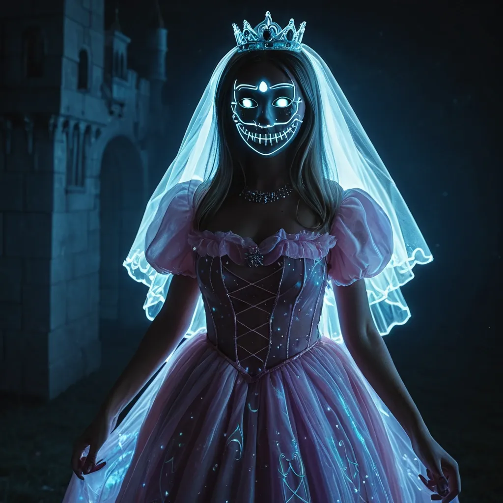A magical fairytale style image of Alice , walking down a black and white harlequin checkered pathway in a magical neon Wonderland. Different types of flowers glow vibrantly in all colours of the rainbow along the path that leads to a magical Disney style castle in the distance. Coloured fairy lights hang from the trees , and the castle glows a brilliant shade of purple and blue. Fireworks fill the night sky , shimmering down on the castle below. highly-detailed , fantasy , whimsical , vivid colours , glowing , neon ,