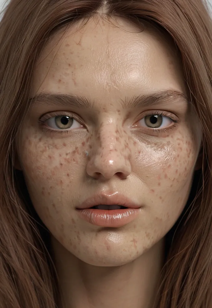 Ein Nahporträt einer very beautiful girl , with long , shiny , wavy and curly brown hair , die ein rotes transparentes Spitzenkleid trägt und selbstbewusst in die Kamera lächelt. Ihre Haut ist strahlend und natürlich mit einem warmen , zugänglichen Ausdruck. Der Hintergrund zeigt einen sanften , verschwommenen Berg mit Schnee und einem gefrorenen See. Die Beleuchtung ist hell und gleichmäßig und betont ihre Gesichtszüge und den freundlichen Ton des Bildes. ,