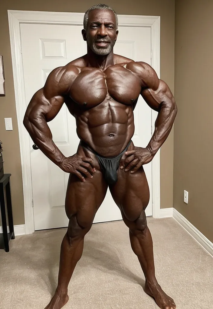 Stunning Dark-Skinned African-American woman radiating absolute power and futuristic dominance. - Face: Flawless deep ebony skin with a subtle luminous sheen , razor-sharp cheekbones , full glossy lips in a muted gunmetal-mauve shade , and perfectly sculpted brows that enhance her fierce expression. - Hair: Long , thick black braids gathered into a high , sleek ponytail that cascades down her back like a warrior’s banner , with the sides cornrowed tightly against her scalp for a clean , aggressive silhouette. - Body: Mind-blowingly muscular and statuesque — impossibly broad shoulders , cannonball delts , veiny biceps , a thick armored chest , and tree-trunk quads , all wrapped in glossy dark skin. The proportions are superheroic , almost mythic , with a tiny , corset-tight waist that defies physics. - Gorgeous hazel eyes: Piercing , glowing hazel-green irises that catch the light dramatically , intensified by the fiery orange lenses of her mask and long , thick lashes. - LO emblem on her chest: A bold , raised , metallic gold “LO” emblem centered directly on her massive , rounded chest plate , outlined in glowing orange piping that pulses faintly , like it’s powered by some inner energy source. - Pose: Frontal power stance , legs planted wide , fists clenched at her sides , shoulders squared , chin slightly raised — pure intimidation and readiness , every muscle flexed and on display. - Clothes: A skintight , high-tech black tactical bodysuit with armored segments , glossy like liquid obsidian. Dramatic orange-golden circuit-like lines run across the suit , accentuating every curve and cut of muscle. Heavy armored gauntlets and reinforced shoulder pads complete the battle-ready aesthetic. - Beauty: Devastatingly beautiful in an overwhelming , goddess-of-war way — the combination of soft , regal facial features with an ultra-jacked , hyper-muscular frame creates a breathtaking contrast of feminine elegance and raw , unstoppable strength. - Mask: A sleek , futuristic half-mask in glossy black with glowing orange accents that frame and intensify her eyes , giving her an almost cybernetic predator vibe while leaving her lower face exposed to show her fierce expression. She looks like the ultimate superheroine straight out of a high-budget sci-fi epic — unapologetic , invincible , and drop-dead gorgeous. ,
