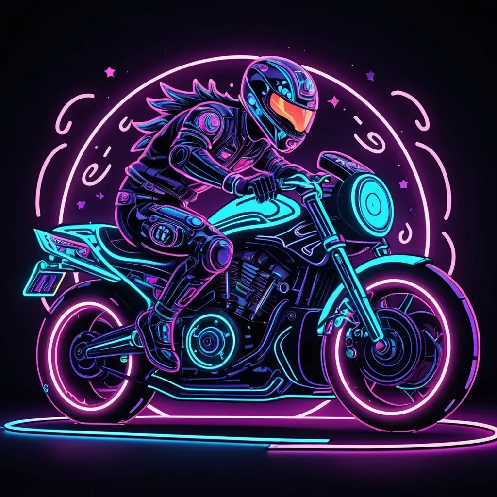 A hyperrealistic , high-contrast cyber-noir illustration of a lone biker astride a sleek , futuristic sport bike , cutting through a rain-soaked metropolis at dusk. The rider , clad in a form-fitting , high-tech riding suit with a reflective visor helmet , leans forward in intense focus , embodying a perfect blend of solitude and raw power. The bike’s aerodynamic design gleams under the neon glow of holographic billboards and towering skyscrapers , their glass facades reflecting fractured light onto the wet asphalt below. The street shimmers with rainwater , creating a mirror-like surface that distorts the vibrant reflections of streetlamps , flickering neon signs , and the pulsing glow of cybernetic advertisements. The city skyline looms in the background—a dense forest of illuminated high-rises , their windows twinkling like stars against the deep indigo and violet hues of the twilight sky. Moody shadows stretch across the scene , accentuating the sharp angles of the bike and rider , while streaks of motion blur hint at the biker’s speed. The composition is cinematic , with a dynamic low-angle perspective that emphasizes the rider’s dominance over the urban landscape. The lighting is dramatic , casting harsh contrasts between the bright neon highlights and the inky darkness of the alleyways. Every detail—from the intricate textures of the rider’s gear to the intricate reflections in the puddles—is rendered with meticulous precision , evoking a sense of hyperrealism that borders on photorealism. The overall aesthetic is a fusion of cyberpunk grit and noir mystery , where technology and humanity collide in a visually stunning , emotionally charged moment. , cinematic lighting , cinematic angle , soft light , color detail , backlighting , Depth of field , long exposure , light steps , intricate colors , vibrant colors ,