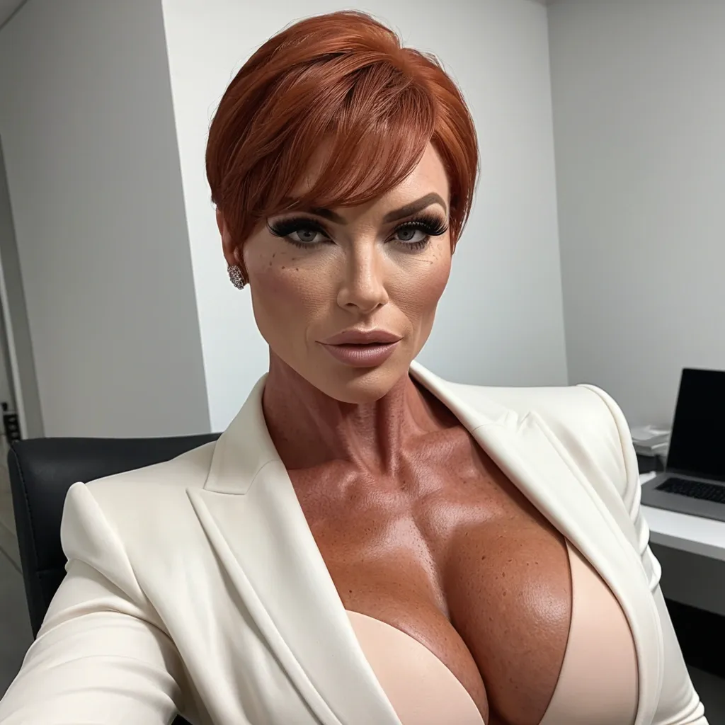 Head Shape: Oval with softly rounded cheeks tapering gently to a narrow , rounded chin. Balanced proportions between upper and lower face.•Hairline: Even curve across the forehead , no widow’s peak. Hair parted slightly to one side , smooth texture with subtle layering near the jawline.•Eyebrows: Medium thickness , smooth arch above the brow ridge , tapering slightly at the outer ends. Space between brows equals roughly one eye width.•Eyes: Almond-shaped , slightly angled upward at the outer corners. Iris visible completely (no drooping lids). Suggest green or light hazel tone. Eyelashes moderately long.•Nose: Straight bridge , medium width; gentle curve from bridge to softly rounded tip. Nostrils are small and symmetrical , base of the nose sits halfway between eyes and chin.•Lips: Full , even shape with a clearly defined Cupid’s bow; top lip slightly thinner than the bottom. Corners of mouth sit aligned with the inner edge of the irises.•Ears: Partially visible through hair , top of the ear aligned with eyebrow height , lower edge with nose base.•Jawline. Green eyes , full body ,