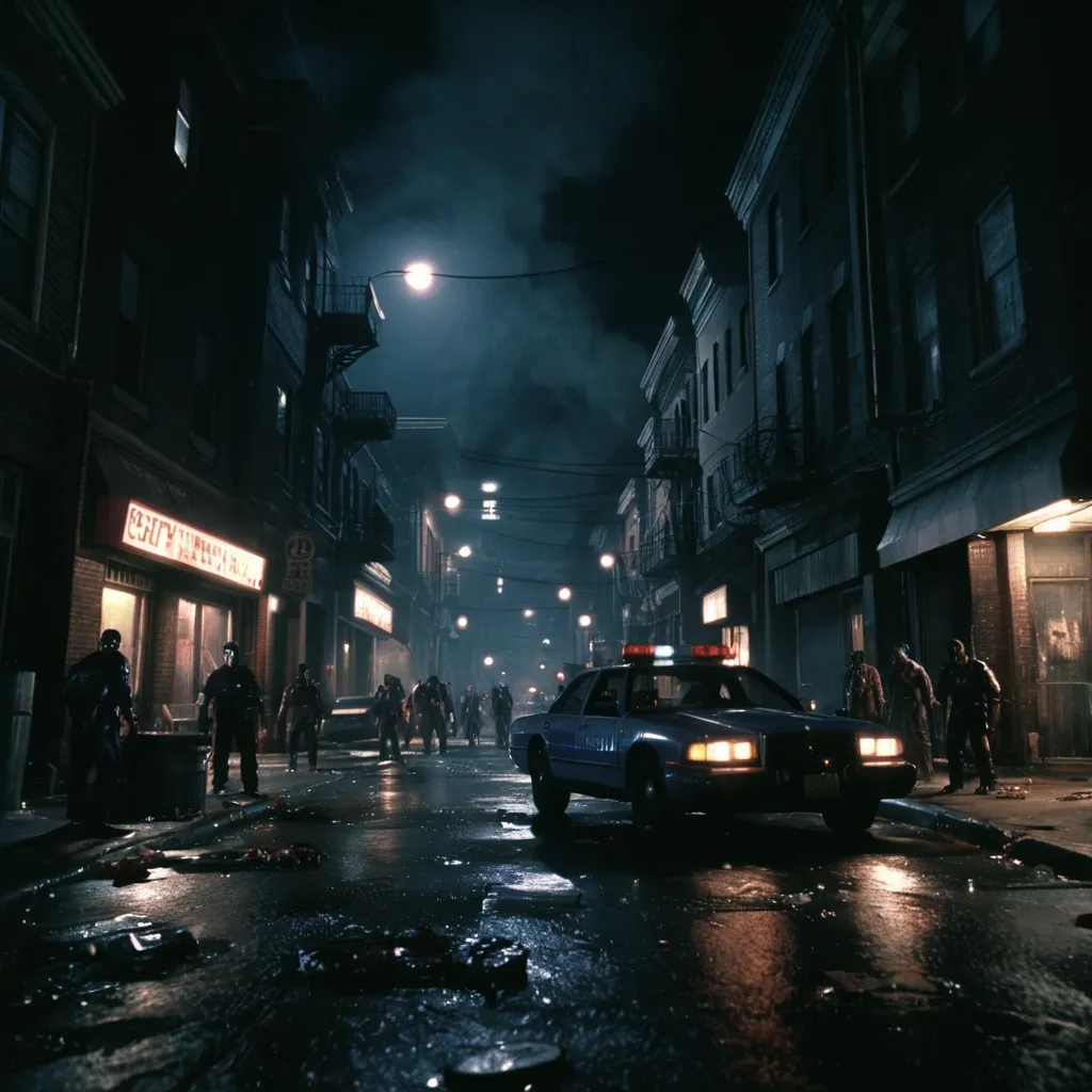 A strong , imposing werewolf with dark skin , dreadlocks , and wolf-like eyes walks alone through the city streets , utterly desolate. This illustration is rendered in a graphic novel style , with bold lines and dramatic shadows , reminiscent of Artstation illustrations. He does not cry , but the profound sense of loss is evident in his eyes. His expression is perpetually serious , devoid of any joy or spark. The city lights reflect off the wet pavement , accentuating his solitude. The overall color palette is muted and somber , with deep blues , purples , and blacks dominating , emphasizing his despair and the weight of his grief. ,