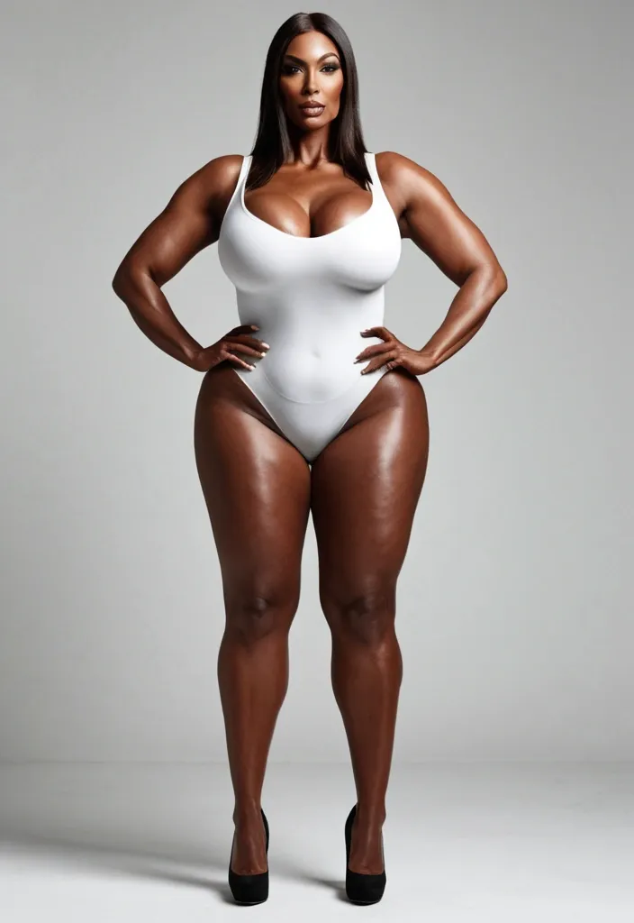 Plan de profil de Very giant curvy bbw bimbo muscular most amazing busty tallest lady with too big implants breast , enormous ass , bbw muscular enormous bimbo powerlifteuse , abnormally massive female muscular bodybuilder , bbw , Géante dame en talons , very big ass , curvacious , gorgeous , Oprah Winfrey face , flexing in front of tiny burglar in a narrow kitchen at evening , wearing a violet window dress , gros seins en évidence , gros biceps énormes , biggest ass , cuisses en évidence , portant des talons , make up , mini latex gloves , vue de profil ,