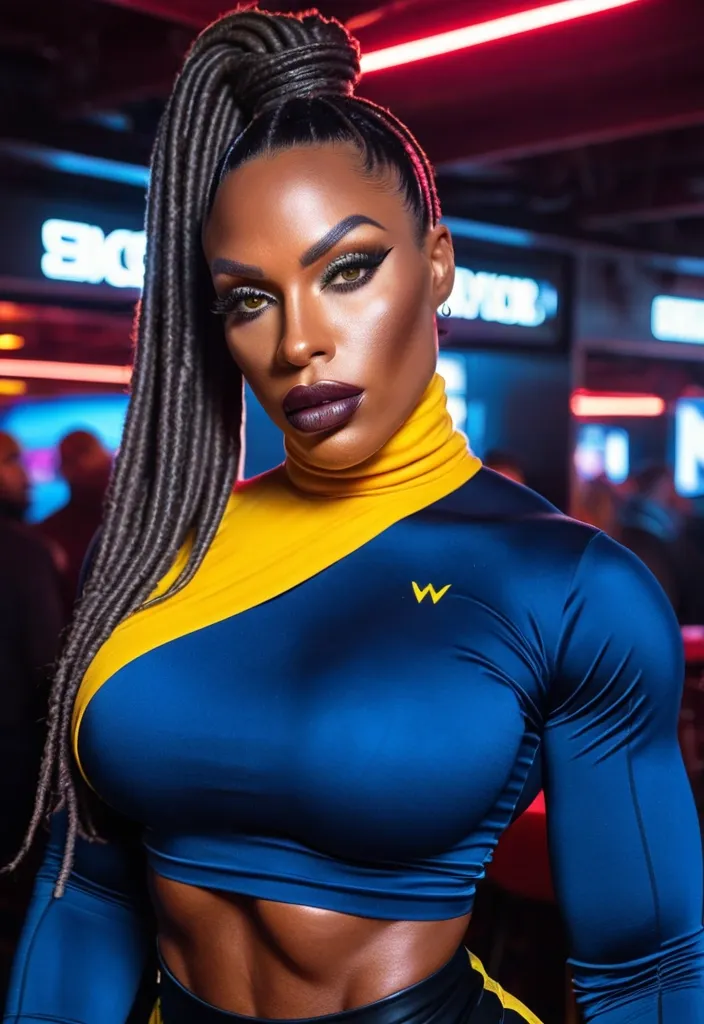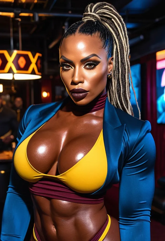 Generate Gorgeous female boss , bimbo , hourglass body , abnormally massive female bodybuilder , gorgeous , close up , full lips , big booty , redheaded , freckles on face and breast , braided design hair , feminine silhouette , too big breast , big booty , sexy thighs abs , silhouette , up close , flexing biceps , beautiful green eyes , legs are iconic and defining physical feature , both visually and in terms of combat ability.wearing an outfit that is a striking blend of elegance , power , and femininity , designed to command attention in any room. The suit is tailored to perfection , hugging the wearer’s curves with precision while emphasizing a structured silhouette. The fabric itself is a refined grey tweed patterned with subtle white grid lines , giving the suit a texture that feels both sophisticated and modern. The blazer features broad blue lapels and gold button accents , adding a luxurious touch that elevates the look beyond typical business attire. The matching high-waisted trousers elongate the frame , further enhancing the poised and commanding effect of the ensemble.The styling choices amplify the boldness of the suit. The inner blouse is a silky , greybutton-down shirt that complements the tweed’s tone while introducing a softer , feminine balance to the sharp tailoring of the jacket. The blouse peeks out neatly from under the blazer , maintaining elegance without drawing focus away from the suit’s commanding cut. Accessories are kept minimal yet intentional: a delicate layered gold necklace and hoop earrings that add glimmers of light and luxury without overpowering the outfit. The choice of voluminous , honey-brown braids cascading down her shoulders frames the face with both confidence and glamour , completing the commanding visual.Altogether , this look communicates a blend of authority and allure. It is business-ready yet fashion-forward , balancing corporate structure with vibrant femininity. The color palette blue , grey and gold avoids being overly delicate , instead embracing the richness of texture , structure , and presence. This is the kind of ensemble that speaks to ambition , sophistication , and personal style—ideal for someone who thrives in positions of influence but insists on expressing her individuality with bold elegance. It’s not just clothing—it’s a statement of power wrapped in grace. In luxury living legs that could crush a watermelon , skirt high boots are a bold and striking statement piece , crafted in glossy black patent leather that gives them a sleek , polished finish. Rising to just below the knee , the boots feature three adjustable buckle straps along the shaft , adding both edge and detail to their design. The towering stiletto heel , paired with a thick platform sole , creates an ultra-dramatic silhouette that elongates the leg and exudes power and confidence. With their combination of shine , height , and structure , these boots perfectly balance fierce femininity with high-fashion allure. Generate Gorgeous female boss , bimbo , hourglass body , abnormally massive female bodybuilder , gorgeous , close up , full lips , big booty , redheaded , freckles on face and breast , braided design hair , feminine silhouette , too big breast , big booty , sexy thighs abs , silhouette , up close , flexing biceps , beautiful green eyes , legs are iconic and defining physical feature , both visually and in terms of combat ability.wearing an outfit that is a striking blend of elegance , power , and femininity , designed to command attention in any room. The suit is tailored to perfection , hugging the wearer’s curves with precision while emphasizing a structured silhouette. The fabric itself is a refined grey tweed patterned with subtle white grid lines , giving the suit a texture that feels both sophisticated and modern. The blazer features broad blue lapels and gold button accents , adding a luxurious touch that elevates the look beyond typical business attire. The matching high-waisted trousers elongate the frame , further enhancing the poised and commanding effect of the ensemble.The styling choices amplify the boldness of the suit. The inner blouse is a silky , greybutton-down shirt that complements the tweed’s tone while introducing a softer , feminine balance to the sharp tailoring of the jacket. The blouse peeks out neatly from under the blazer , maintaining elegance without drawing focus away from the suit’s commanding cut. Accessories are kept minimal yet intentional: a delicate layered gold necklace and hoop earrings that add glimmers of light and luxury without overpowering the outfit. The choice of voluminous , honey-brown braids cascading down her shoulders frames the face with both confidence and glamour , completing the commanding visual.Altogether , this look communicates a blend of authority and allure. It is business-ready yet fashion-forward , balancing corporate structure with vibrant femininity. The color palette blue , grey and gold avoids being overly delicate , instead embracing the richness of texture , structure , and presence. This is the kind of ensemble that speaks to ambition , sophistication , and personal style—ideal for someone who thrives in positions of influence but insists on expressing her individuality with bold elegance. It’s not just clothing—it’s a statement of power wrapped in grace. In luxury living legs that could crush a watermelon , skirt high boots are a bold and striking statement piece , crafted in glossy black patent leather that gives them a sleek , polished finish. Rising to just below the knee , the boots feature three adjustable buckle straps along the shaft , adding both edge and detail to their design. The towering stiletto heel , paired with a thick platform sole , creates an ultra-dramatic silhouette that elongates the leg and exudes power and confidence. With their combination of shine , height , and structure , these boots perfectly balance fierce femininity with